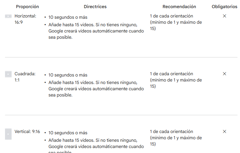 Por eso, si quieres que Performance Max funcione de verdad, necesitas subir vídeos optimizados en distintos formatos.